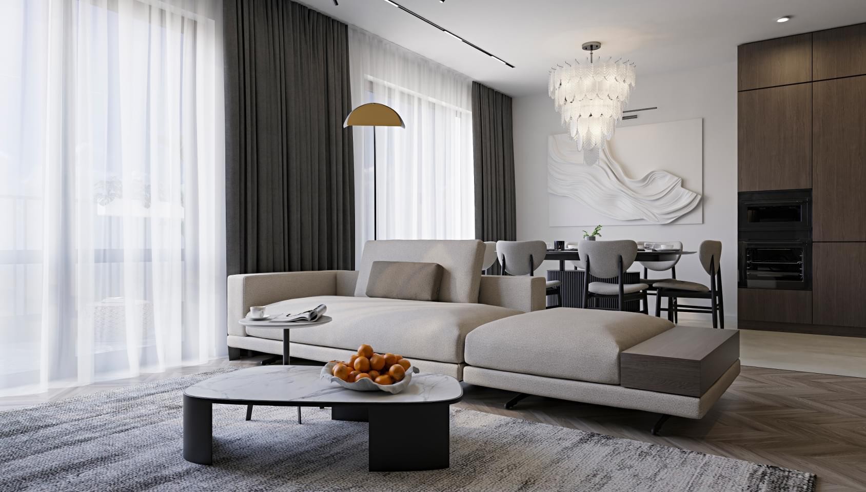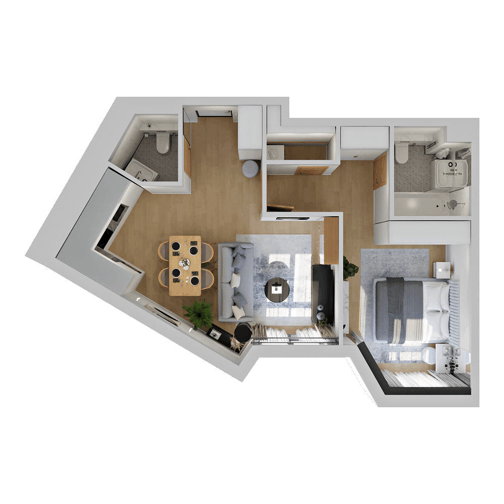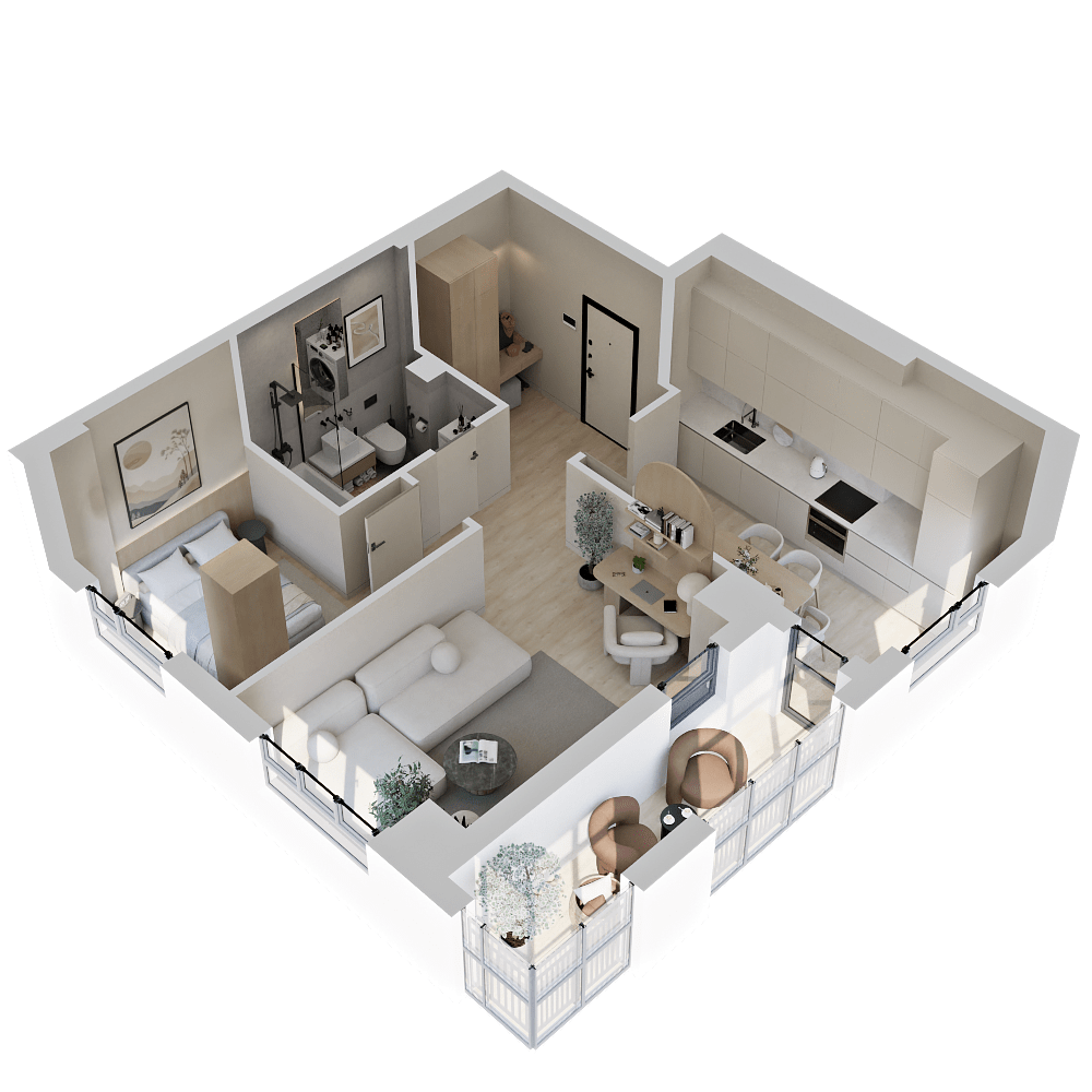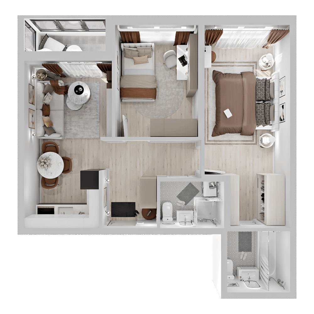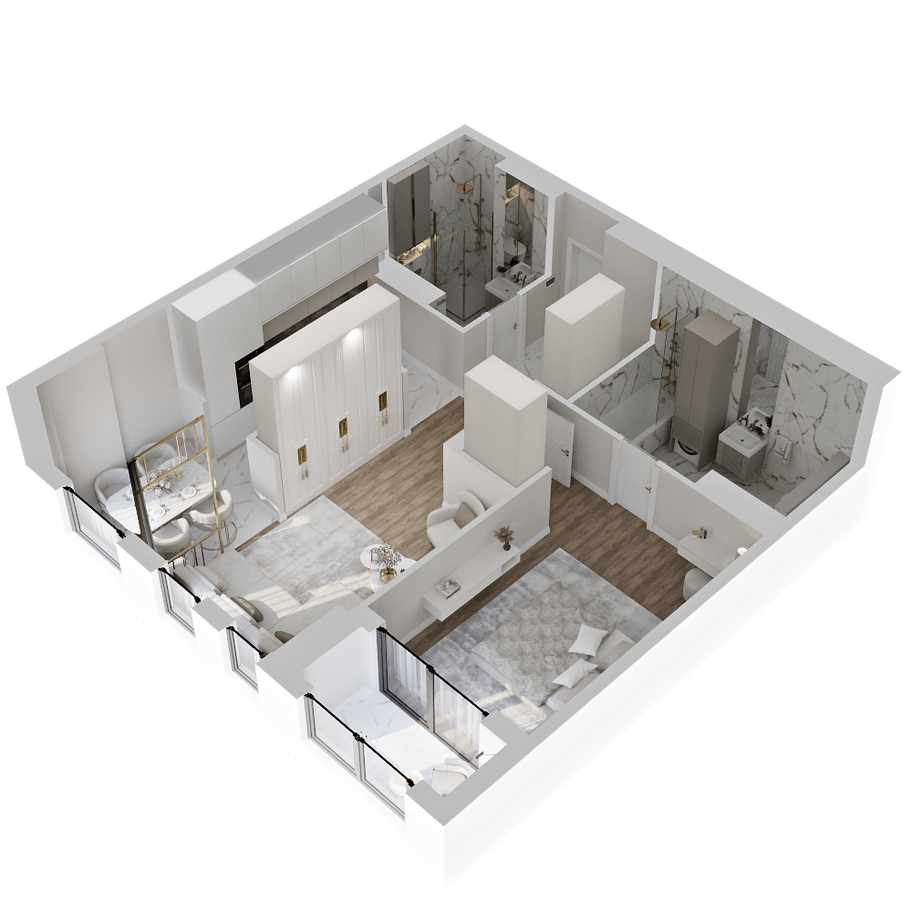 Стильные и атмосферные интерьерные рендеры с впечатляющей детализацией и реалистичностью. Они привлекут внимание покупателей и помогут представить себя в будущей квартире. Закажите создание интерьерных рендеров в пакете услуг и используйте их в своих буклетах, печатных материалах и на сайте жилого комплекса.