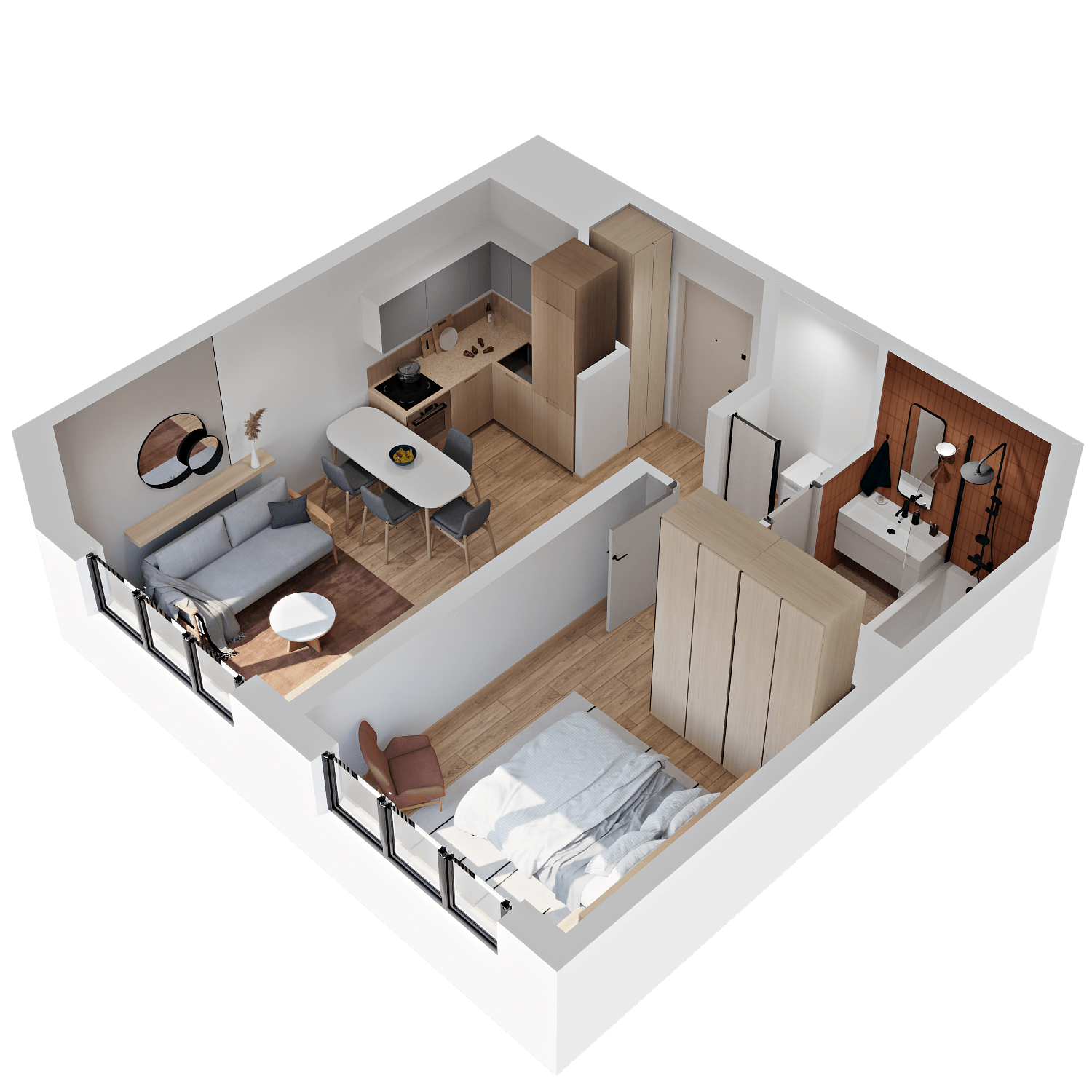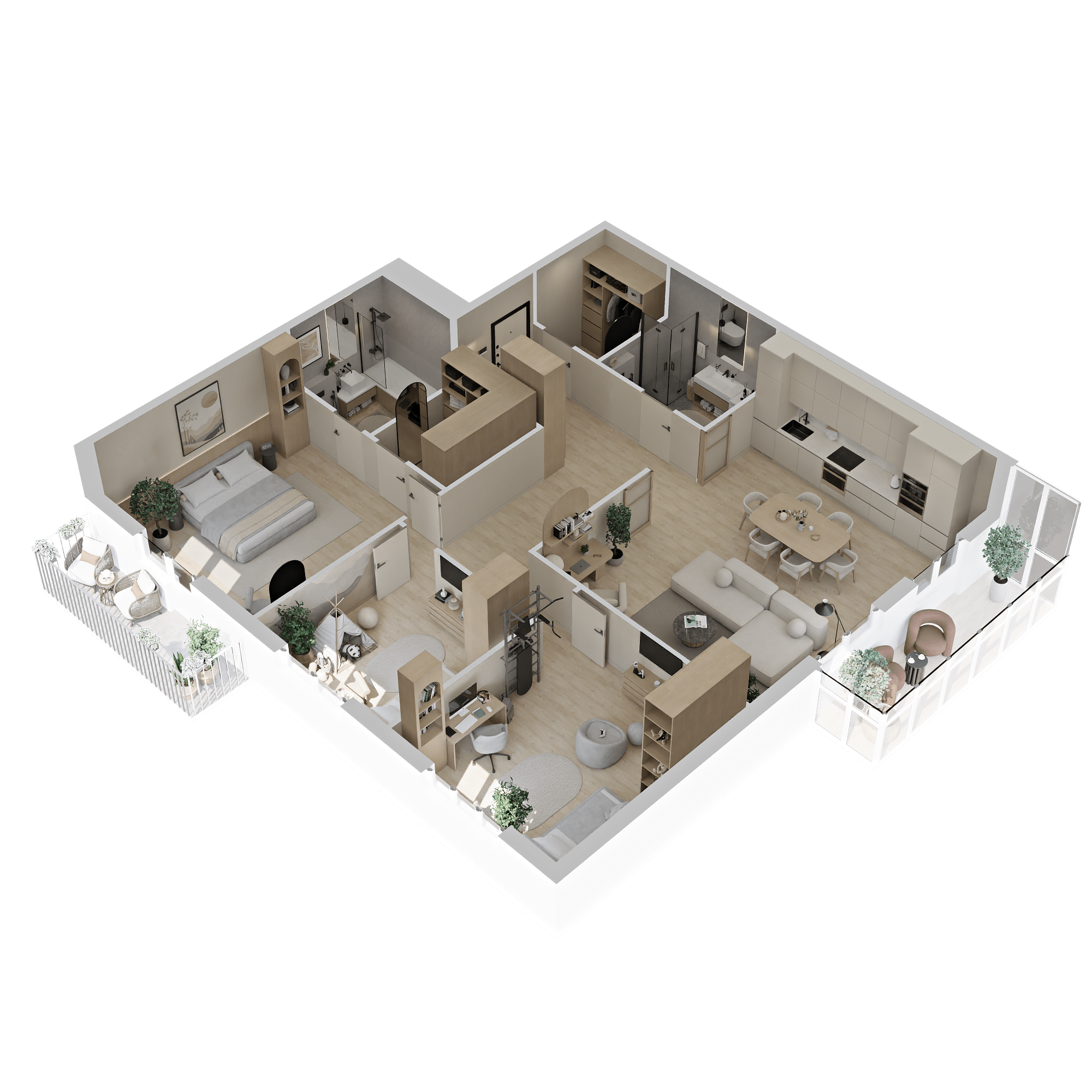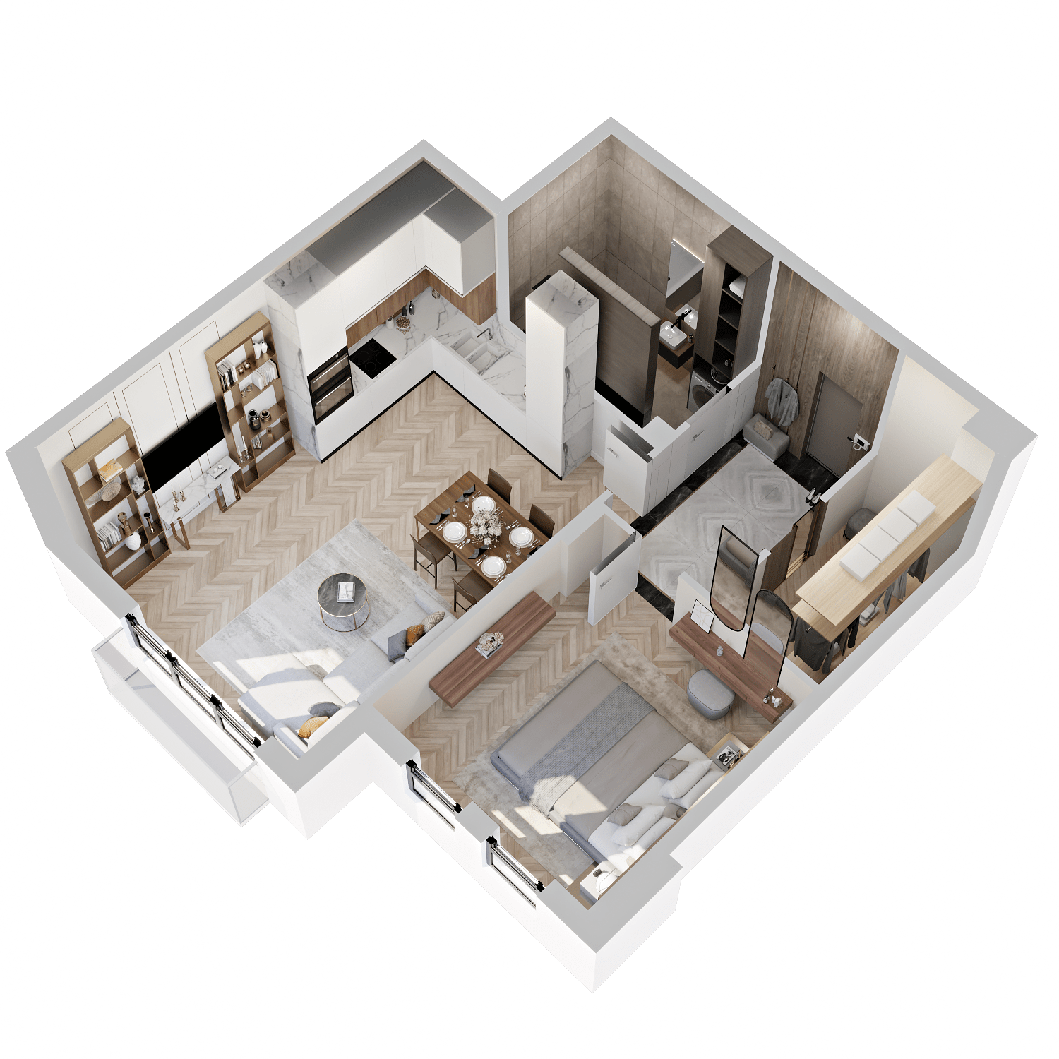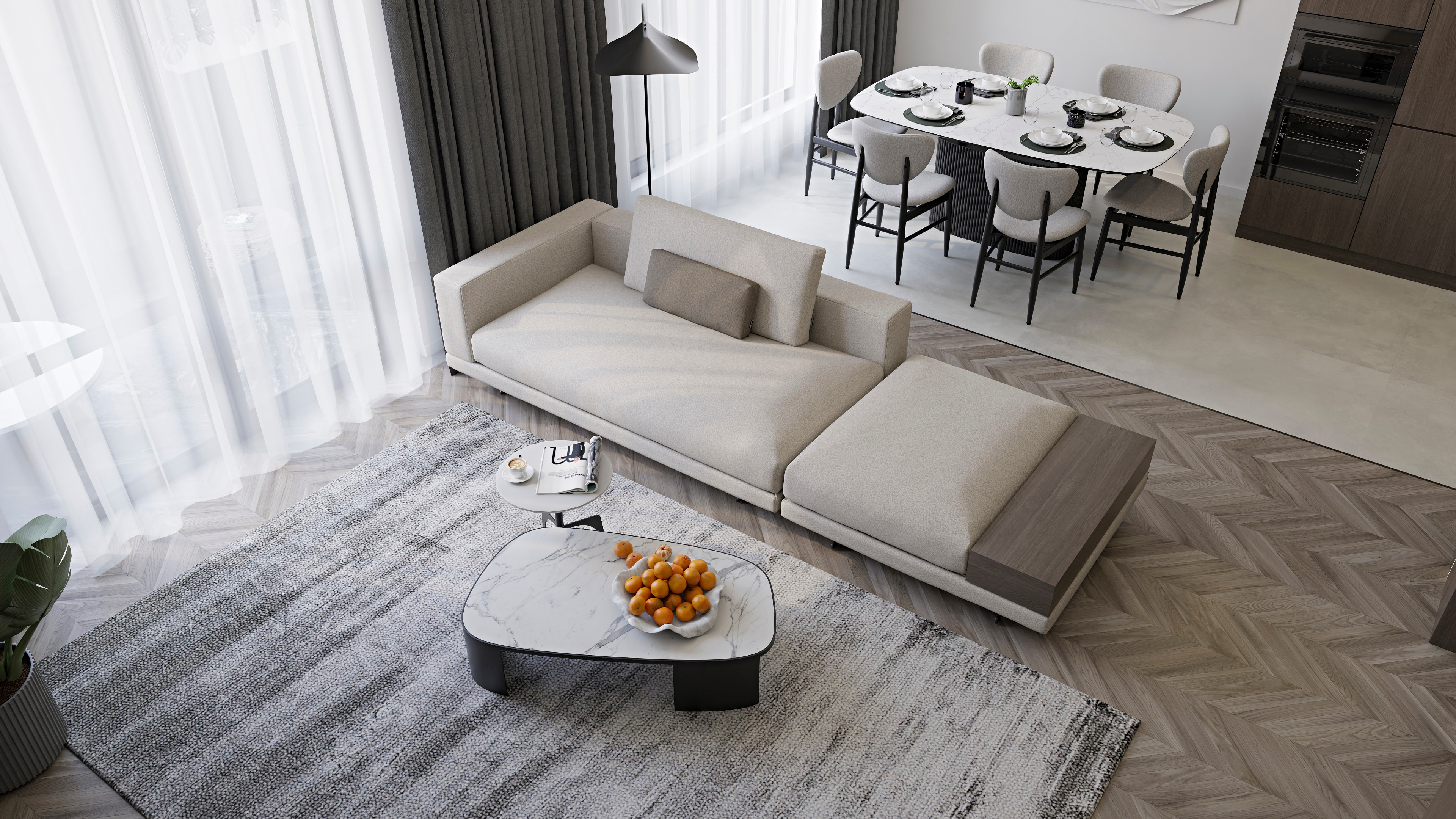 Стильные и атмосферные интерьерные рендеры с впечатляющей детализацией и реалистичностью. Они привлекут внимание покупателей и помогут представить себя в будущей квартире. Закажите создание интерьерных рендеров в пакете услуг и используйте их в своих буклетах, печатных материалах и на сайте жилого комплекса.