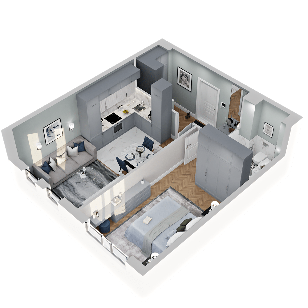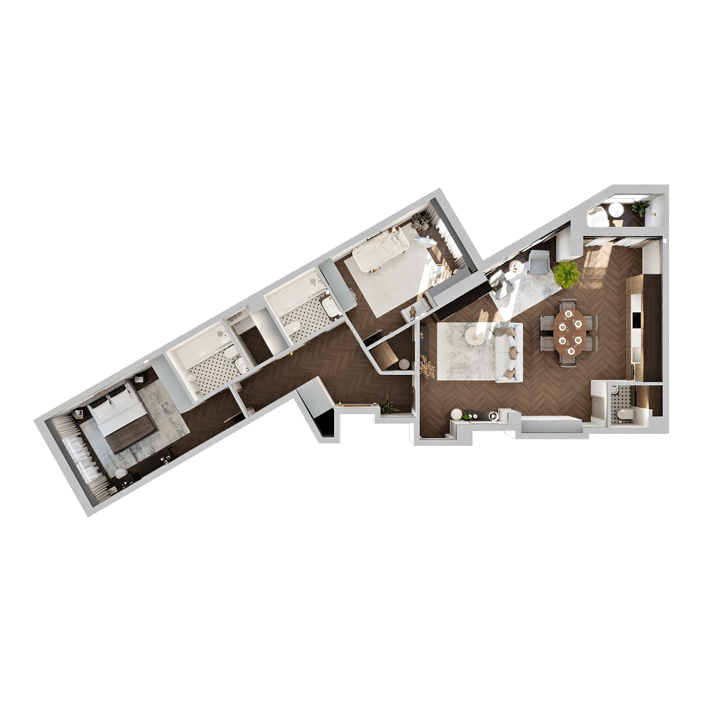 Каждая планировка будет иметь оптимальный набор мебели и выглядеть максимально просторной. Мы создаём цифровую модель всего жилого комплекса с визуализацией каждой квартиры. Поэтому наши решения обсуждают, бронируют и покупают.